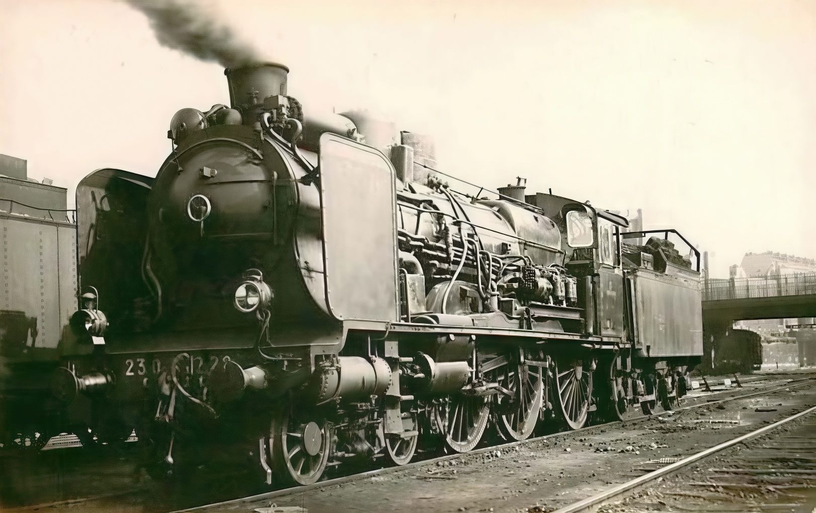 1-230 K SNCF avec 3 dômes, tender 22m3 et réchauffeur Worthington (immatriculations proposées : 230 K 142 et 128).