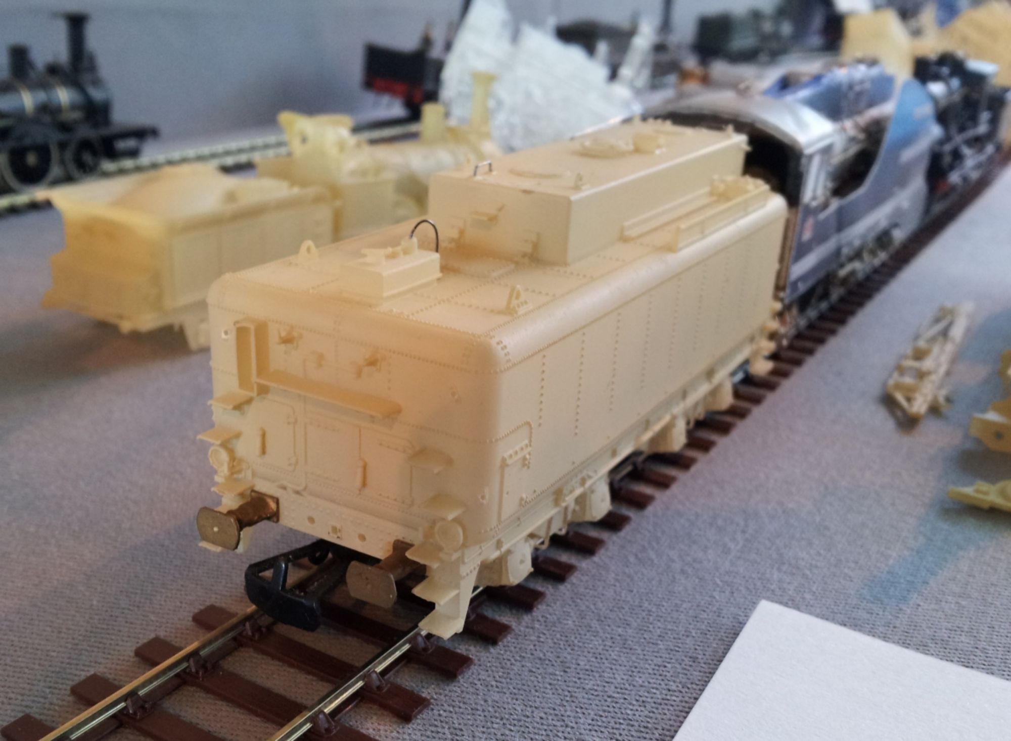 « Les formes élaborées de la machine réelle ont donné l'occasion à Est Modèles d'illustrer les possibilités fantastiques de l'impression 3D appliquée au modélisme ferroviaire: le kit complet de cette machine peut se monter sans soudures et est accessible à tout amateur soigneux.