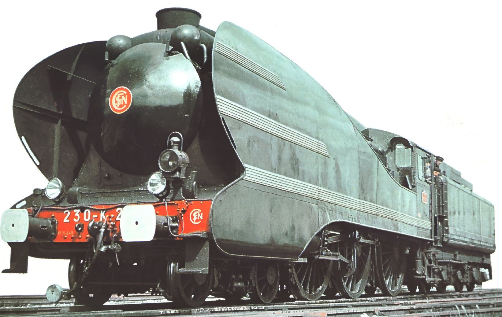 Ce sont des 230 K des Chemins de fer de l'Est , qui ont été carénées et converties à la chauffe au fuel pour assurer les 502 kilomètres du trajet Paris à Strasbourg avec la même équipe.