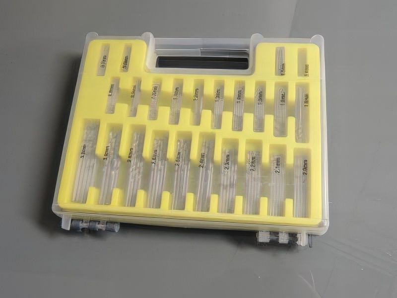 La boite de forets, très utile pour divers travaux sur les "carrosseries" de vos locomotives, mais aussi pour bien d'autres travaux. 150 forets de dixième en dixième de 0.4 mm à 3.2 mm. 10 forets de chaque diamètre du 0.4 mm au 2 mm et ensuite 5 forets du 2.1 mm au 3.2 mm. le tout, vous est proposé dans une boite bien utile pour ranger et classer vos forets. Ce sont des forets pour le plastique et le bois. Ils peuvent servir pour le métal, mais leur usure n'en sera que plus rapide. La boite complète vous est proposée au prix de 30.00 € (ref 905).