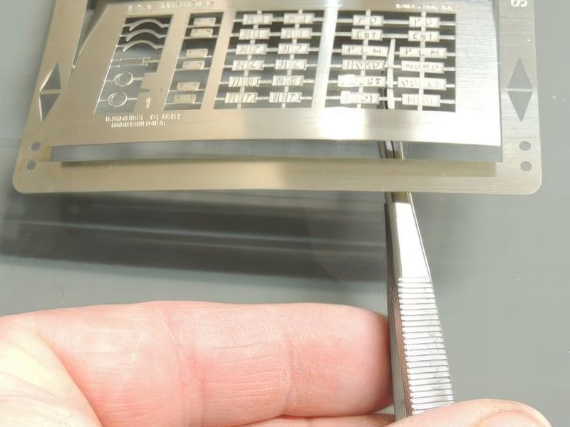 Les ciseaux de photogravure pour dégrapper facilement les pièces sur les plaques de photogravure. Ils sauvegarderont vos lames de cutters qui souffrent beaucoup de la coupe du métal. Pour l'utilisation, il est important de tenir les ciseaux avec la main droite et de couper par le dessous (voir photo de droite). Avec cette méthode, les attaches seront coupées au raz de la pièce, nécessitant que peu ou pas de finition à la lime. Les ciseaux spéciaux extrèmement coupants sont proposés au prix de 12.00 € l'unité (ref 908).