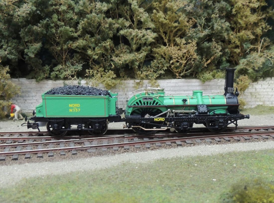 Reproduction fidèle d'une locomotive Crampton du NORD de 1852.